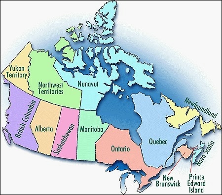 Kanada sa delí na 10 provincií a tri teritória. Najväčšia provincia, čo sa týka počtu obyvateľov je Ontário. Miliónové provincie sú Quebec, British Columbia, Alberta, Manitoba, Saskatchewan. Iné provincie ako Nova Scotia, Prince Edward Island a New Brunswick majú menej obyvateľov, kvôli ich relatívne malej rozlohe. Tretia skupina provincií a teritórií, do ktorej patria Yukon, Newfoundland a Labrador (provincia), Northwest Territories a Nunavut, majú malý počet obyvateľov vďaka ich polohe, pretože ležia v severnej časti Kanady.